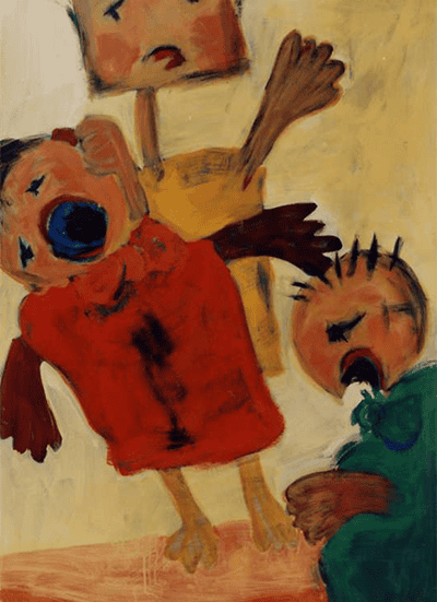 With mostly strong, complementary colors, nervous, sometimes spidery lines, she stages her of her small- and large-format paintings to human situations of fear, emptiness, passion, unfulfillment. Although Annette Kunow abstracts her figures throughout, she never leaves reality in the direction of non-objective painting.