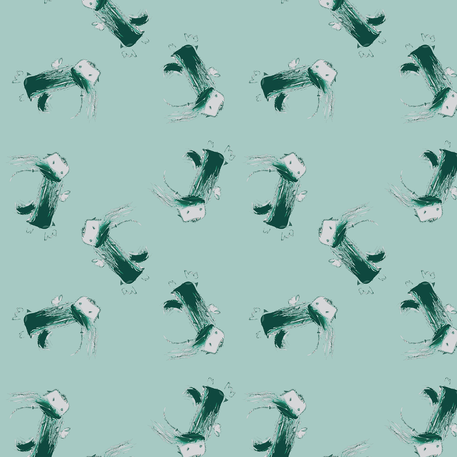 They arise from free artistic practice and are transformed into precise repeat systems—for textiles, wallpaper, and interiors.