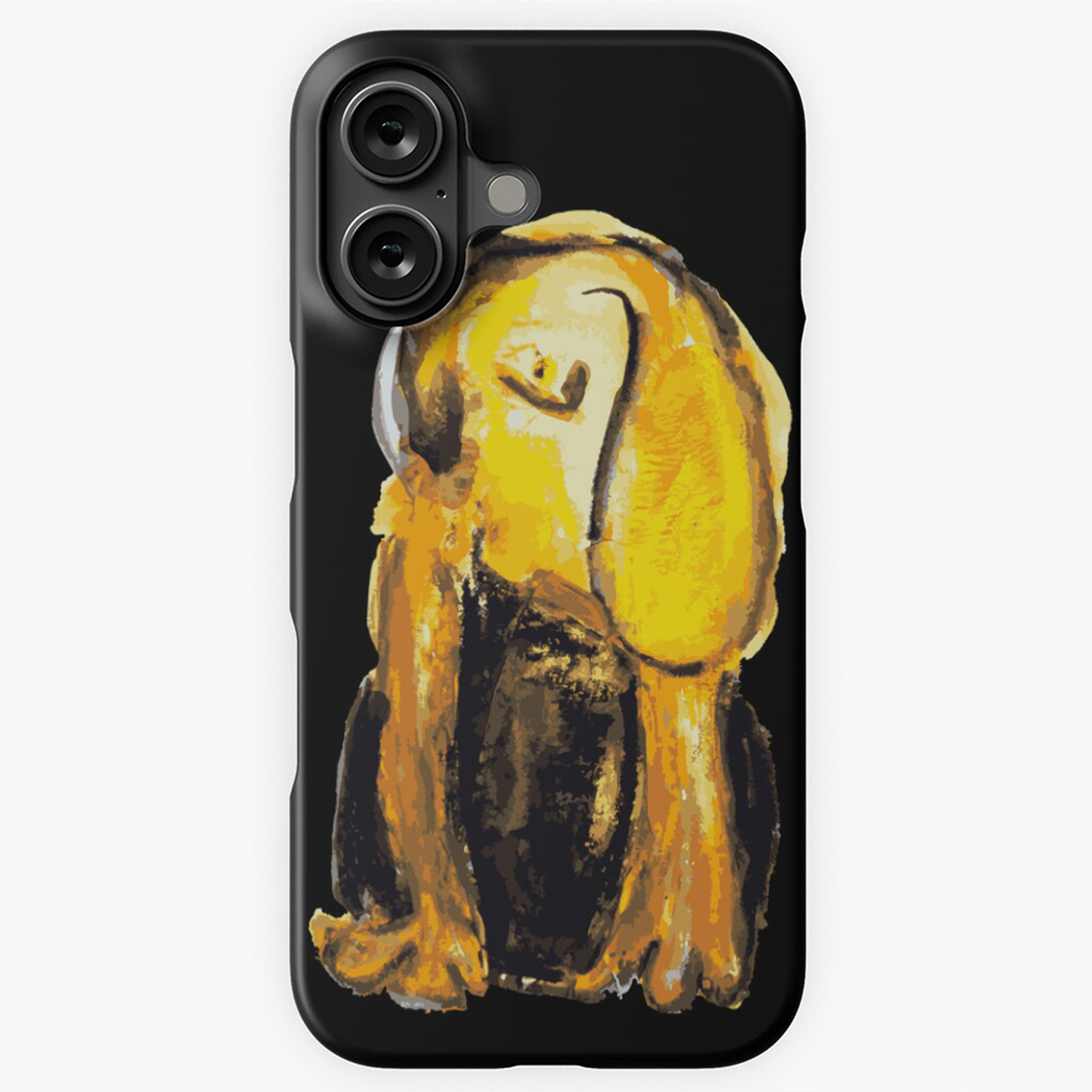 Hund ist ein knuffiges Hundekind in warmem Gelb mit schwarzem Körper – bereit zum Spiel - für Home, Kidswear & Stationery
