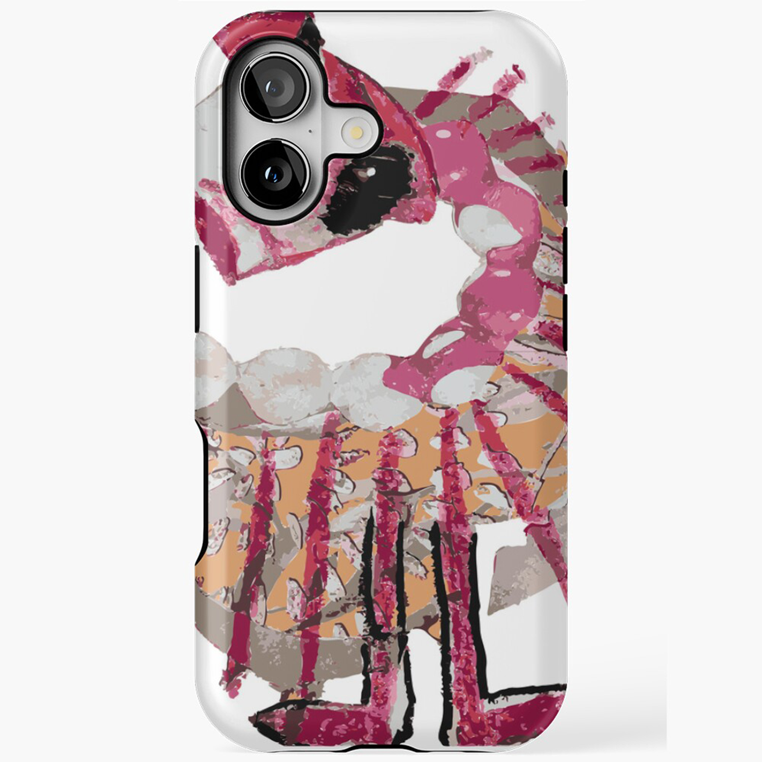 Eine verspielte, abstrakte Tierfigur in kräftigen Rosé-, Rot- und Orangetönen - für Home, Kidswear & Stationery
