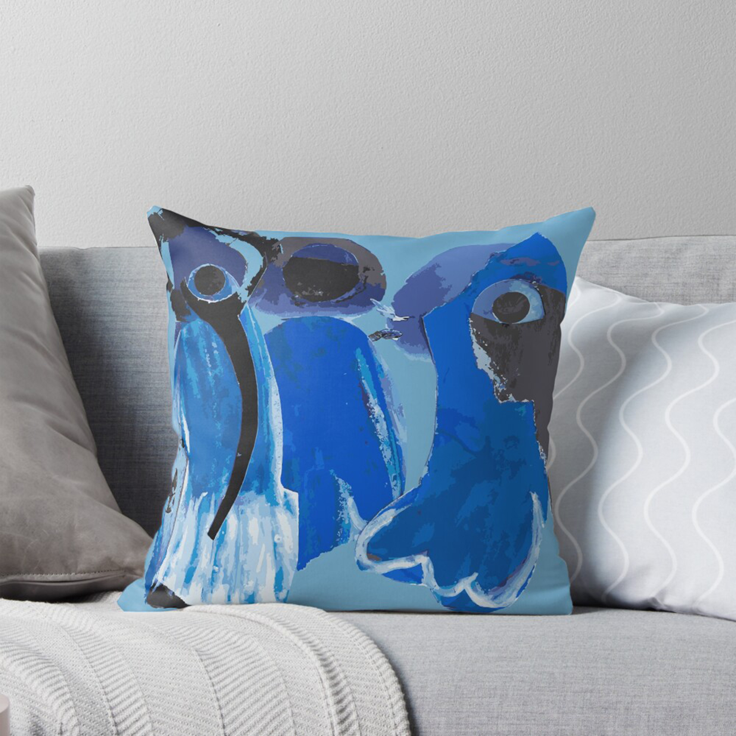 Drei Gestalten, geboren aus Blau. Sie stehen nebeneinander, verbunden durch Farbe, doch jede spricht ihre eigene Sprache - für Home, Kidswear & Stationery