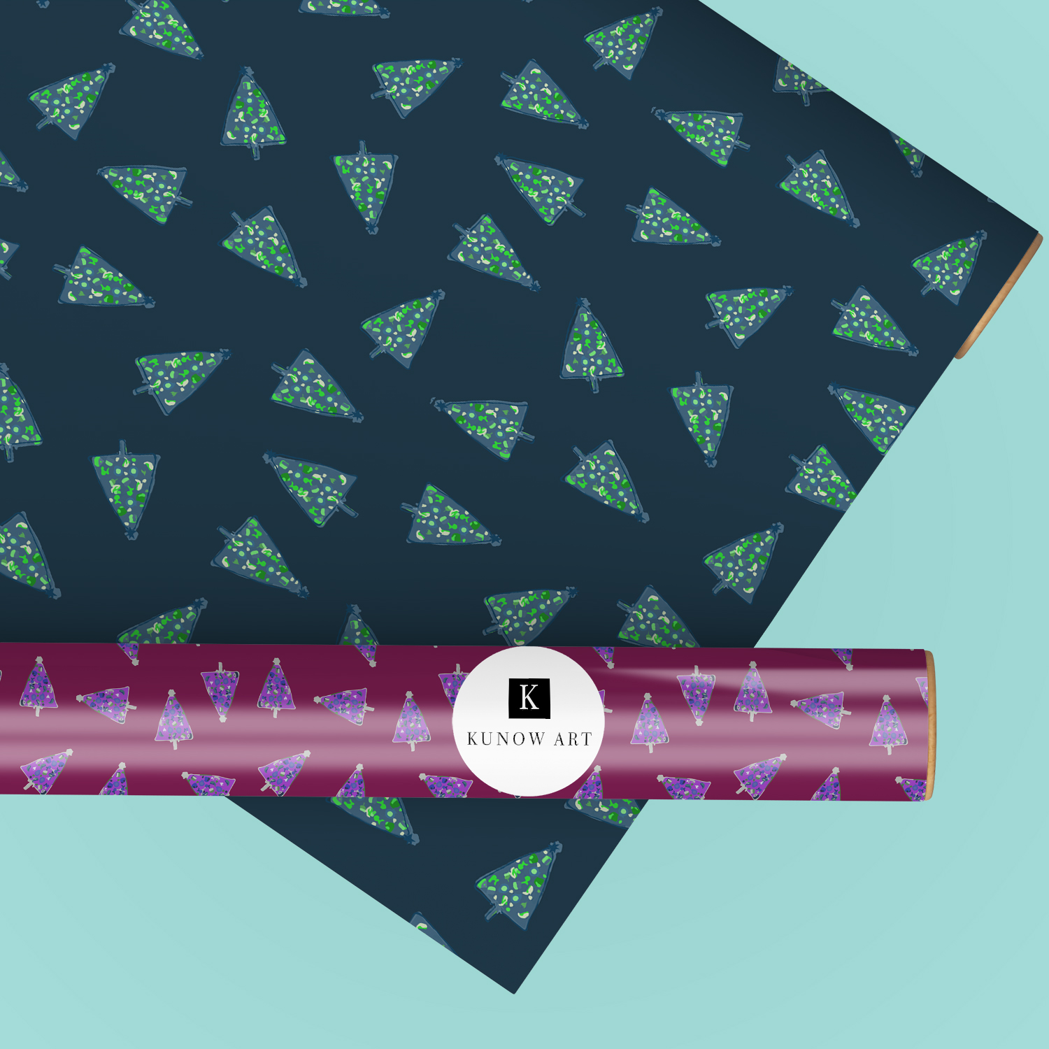 „Weihnachtsbaum – Tannengrün“ bringt klassische Feststimmung in ein modernes, ruhiges Muster. Die klar gezeichneten Tannen mit dezenten Sternchen funktionieren auf Textilien,