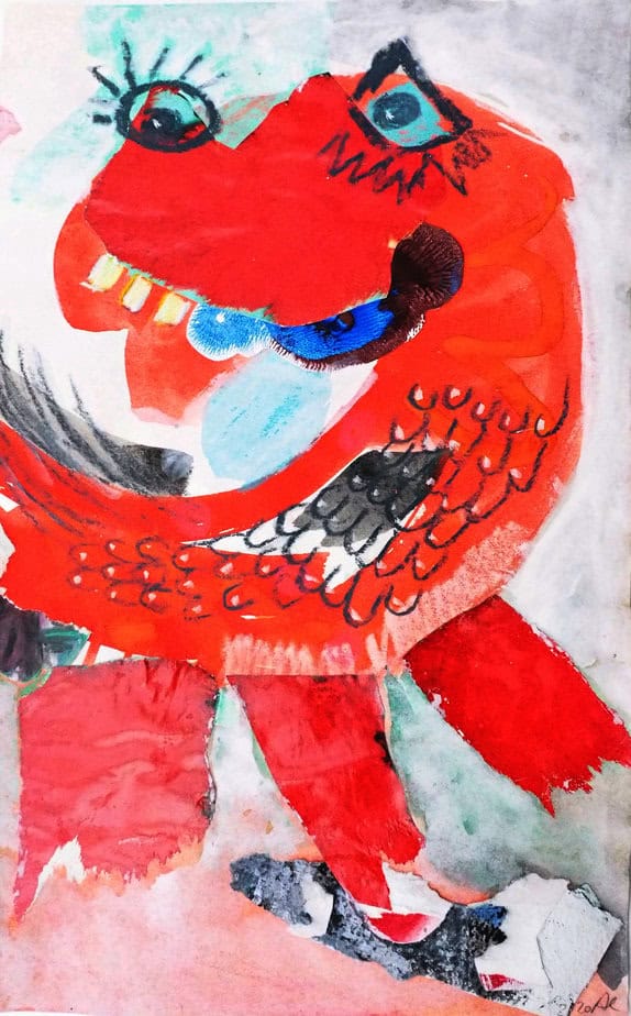 Mixed media on paper, 36 cm x 21 cm, 2020, H363, Red Dragon